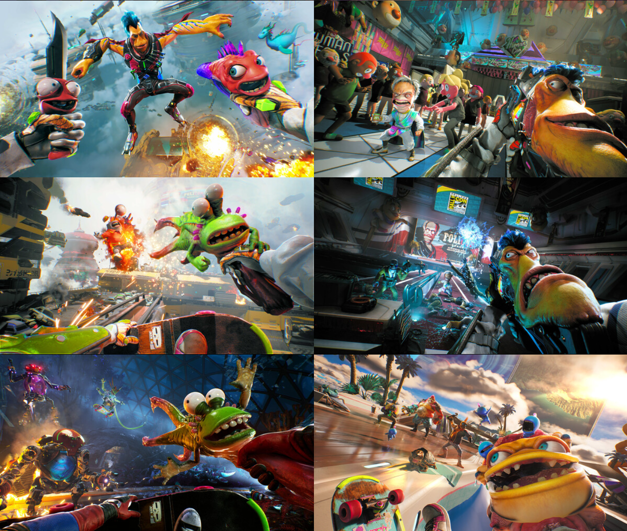 An intergalactic conspiracy threatens the fate of humanity! Team up with a wide cast of talking alien guns as you shoot, stab, and skate your way through the exotic locales to take down the bad guys and save your favorite species (humans)!