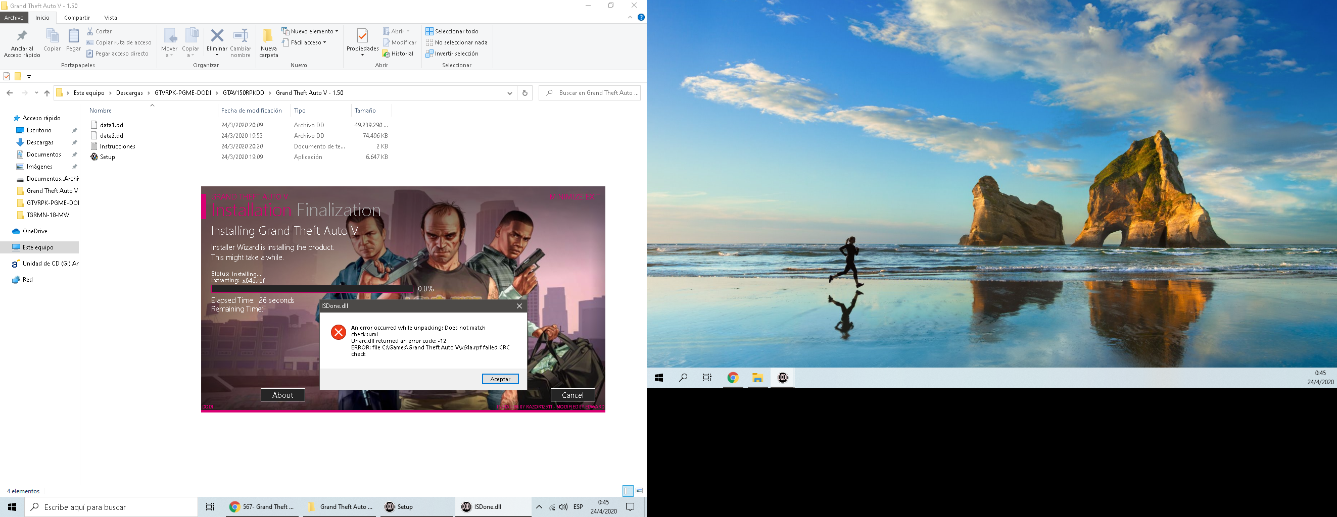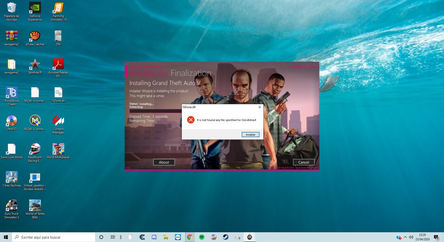 IMPORTANTE: Para el que intenta instalarlo y le sale este error al querer instalar cualquier crack (error isdone.dll)